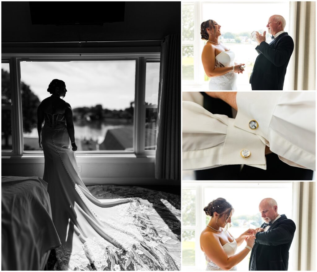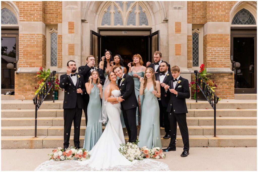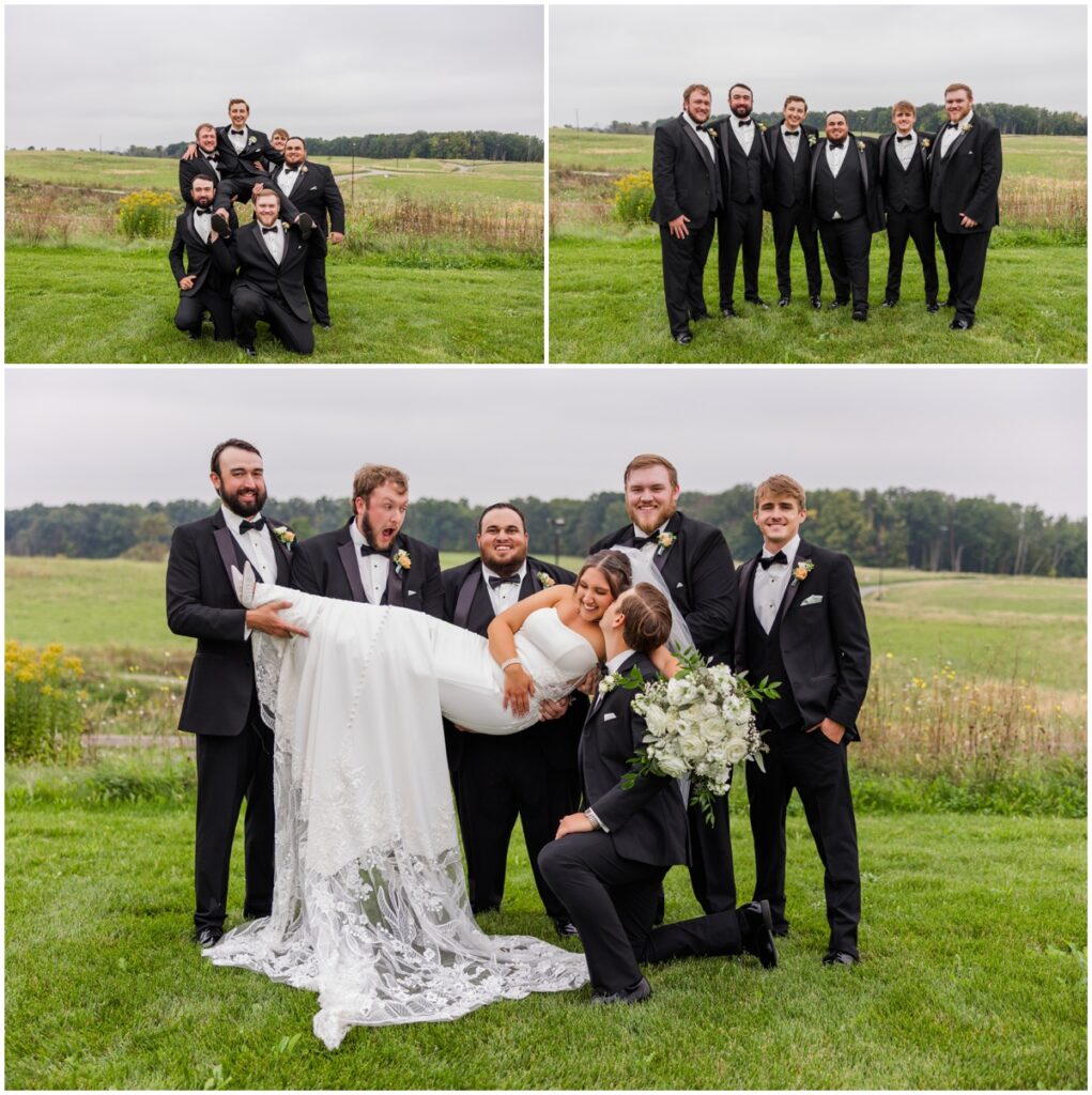 When the wedding party got there we rolled right into some pictures. They had a blast with it! Even the guys were happy to get goofy and have fun. We did a short stint of photos with just our beautiful bride and groom then because we were maybe a tad behind. Besides, they had cocktail hour to get too and dinner was just about ready. And since they both looked amazing it didn’t take long to get great shots! Speeches were awesome and guest favors have now been ruined for me forever. I doubt any will live up to the handmade – by the father of the bride – cheese boards with a block of real Wisconsin cheese that went home with every household. How do you top that?