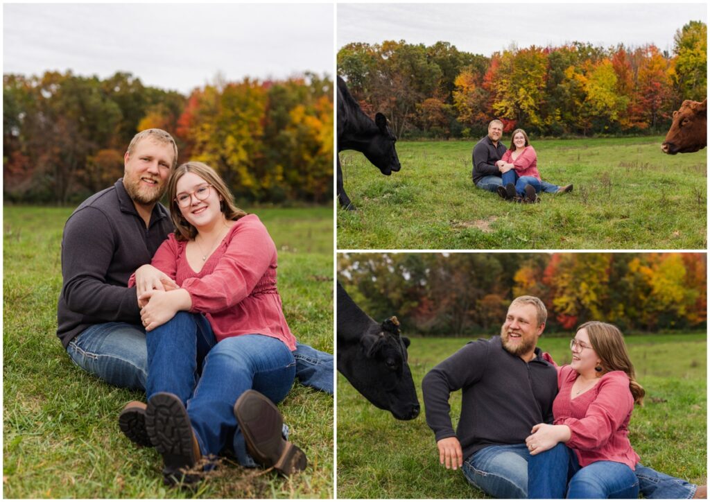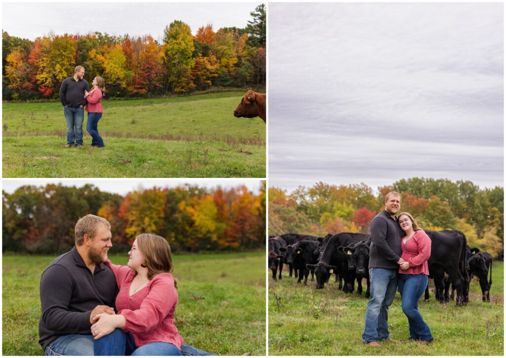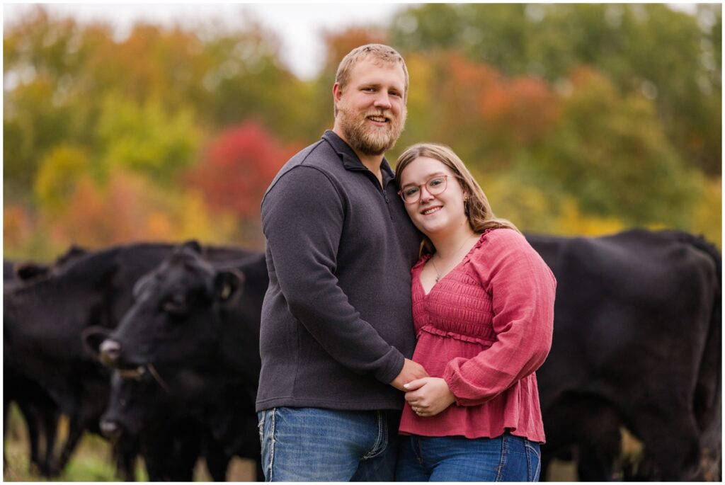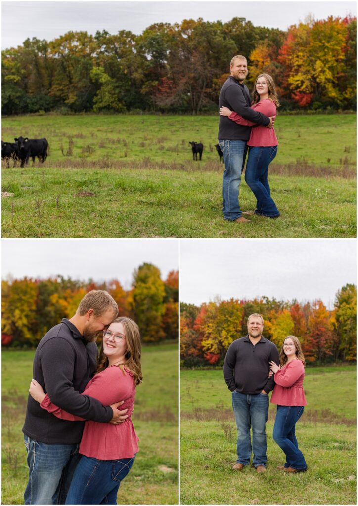 Rant over. Moving on. For their engagement session we kept it local. Like right in their backyard pasture type of local. Lucas seems to bring photo bombers with him to sessions. Many years ago when I got to take his senior pictures we had cats doing their business right in the shots. This time we had cows and mom’s dog that were convinced the afternoon was about them. Chloe laughed it right off with him though and honestly, it made for some memories!