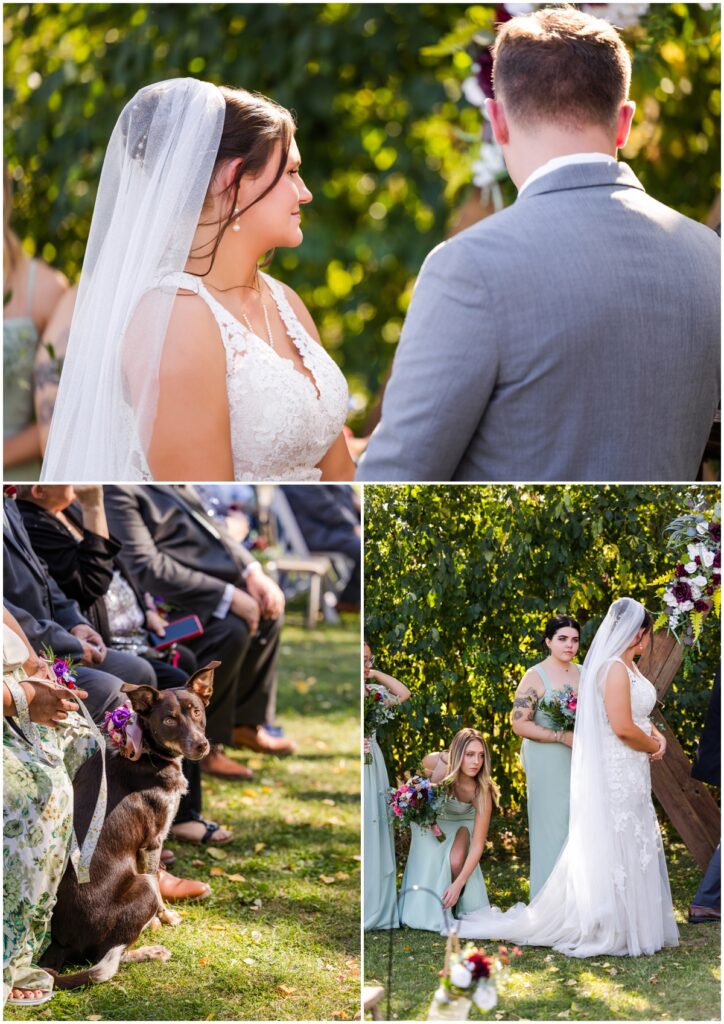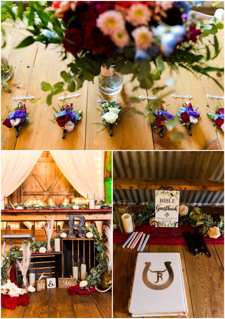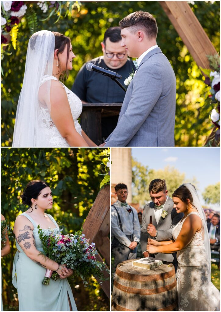 Time for the ceremony! Since they grew up going to separate churches they had two officiants at this wedding. Pastor Andy was the main guy and did a great job working in some jokes about the car alarm that was going off in the parking lot for quite a bit of the ceremony. The owner of Poplar Creek jumped in and handled that situation with class I might say. This ceremony was so personal to Jamie and Tyler. They even brought in a bit of their shared love of all things western and branded a Bible to be theirs together.