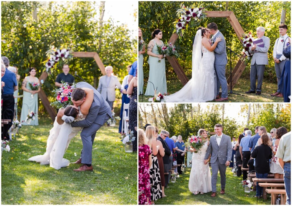 I know I write way too often about the weather when I do a wedding post. I can’t help it. It’s the farmer upbringing. Discussing it though for Jamie and Tyler is warranted. We are in Wisconsin. It is October. The temperature at ceremony time for this outdoor wedding was over eighty degrees. That’s right. 8-0 plus. And it was windy. Okay I’ll move on.