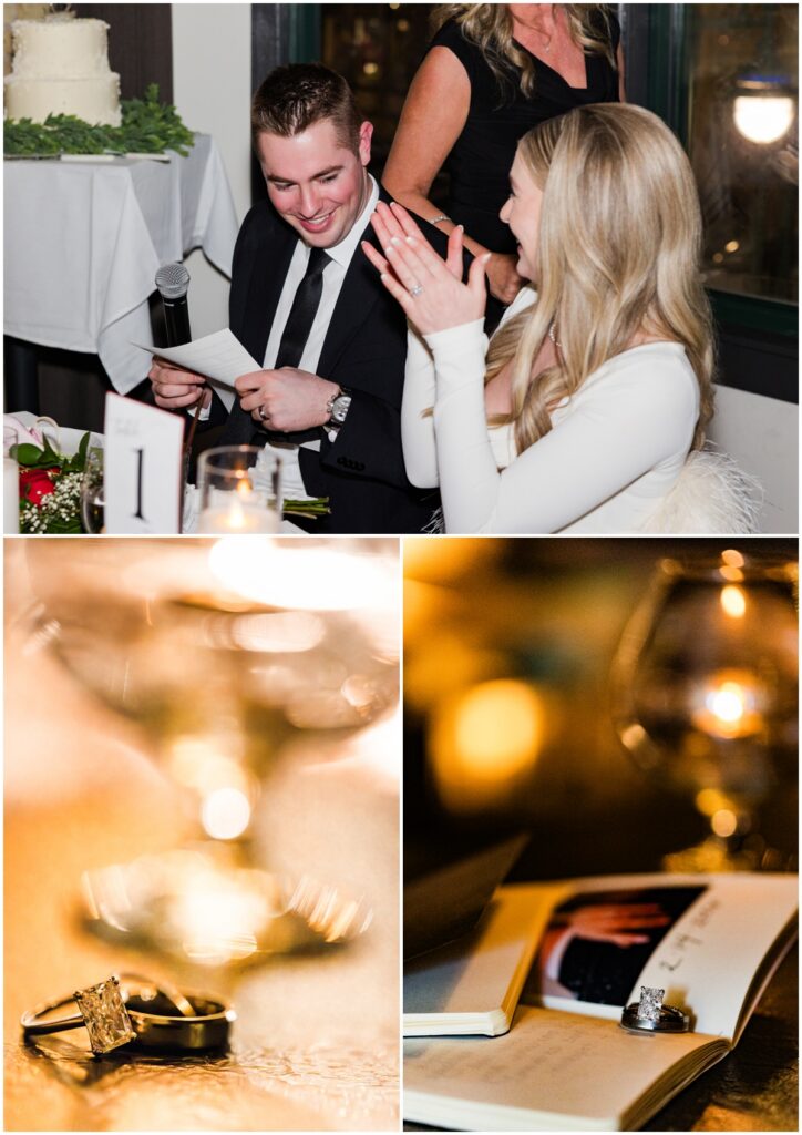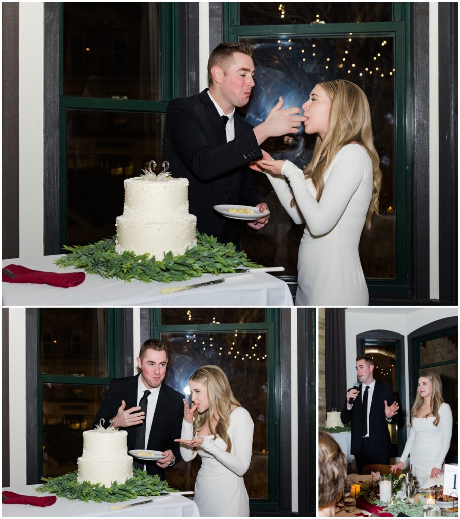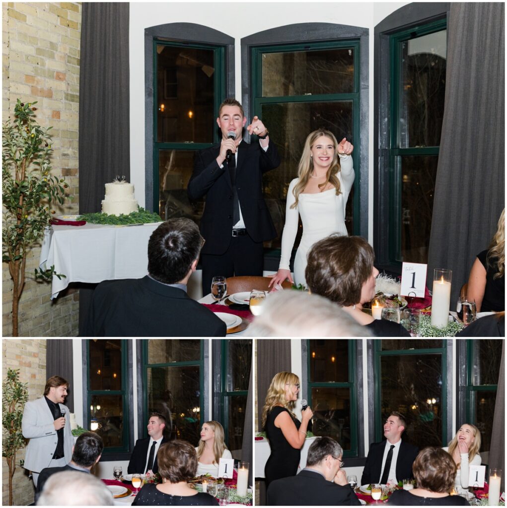All the guests in attendance then gathered up around the bar on the other side of the room while the ceremony space was flipped for dinner. The cake was cut, the speeches were spoke, the dinner was served. An amazing dinner by the way, could you ever go wrong with italian?